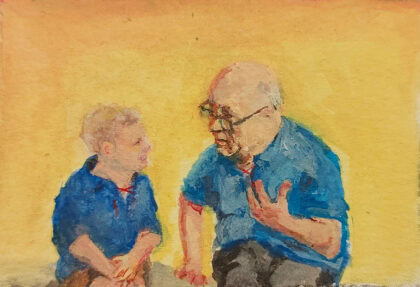 Guy Bernard Reichmann, First grade (from the series ‘1986 1993’), 2025, Gouache and watercolor on canvas, 6x8 cm