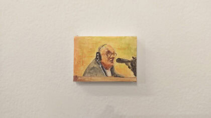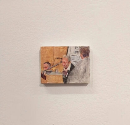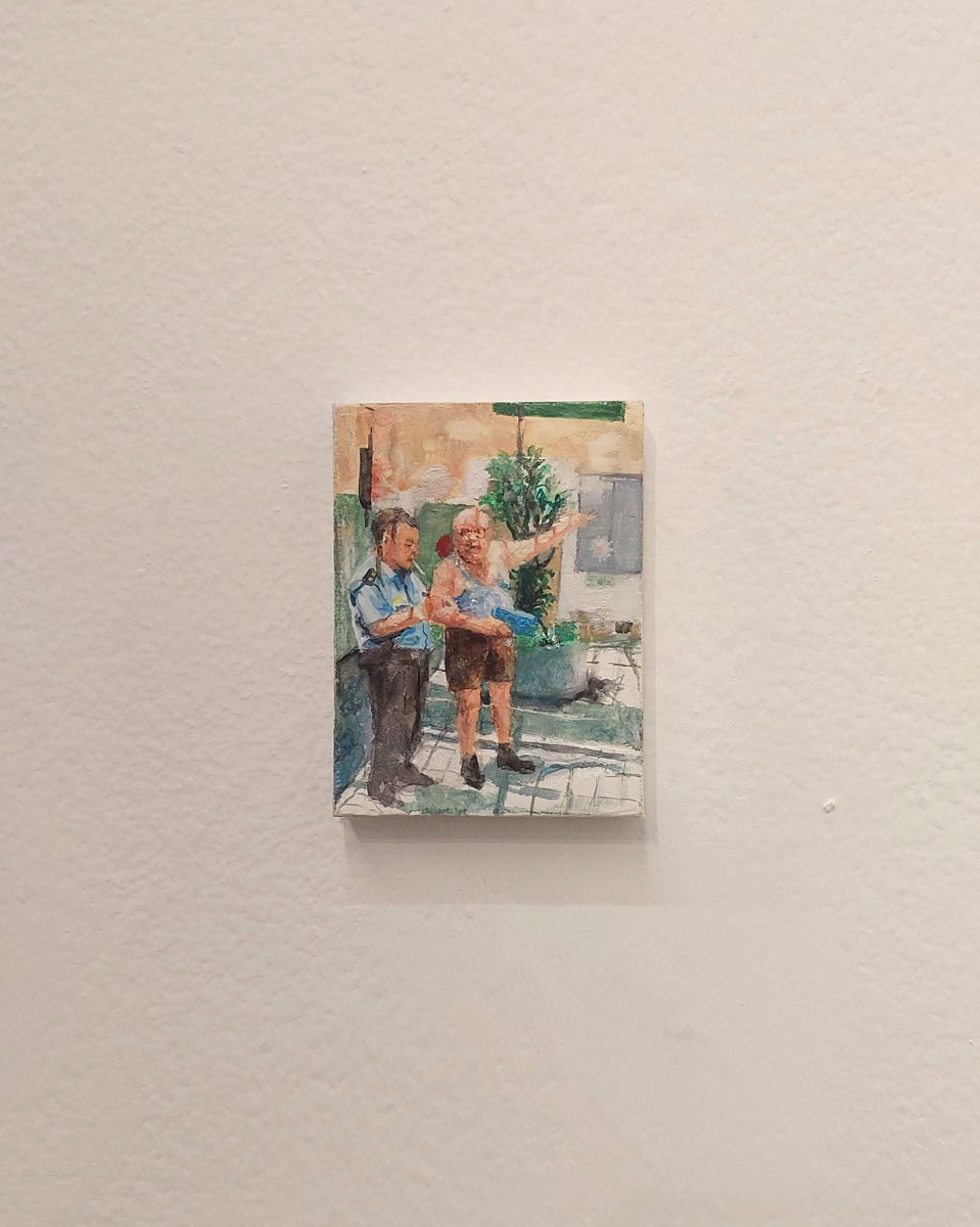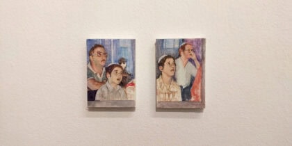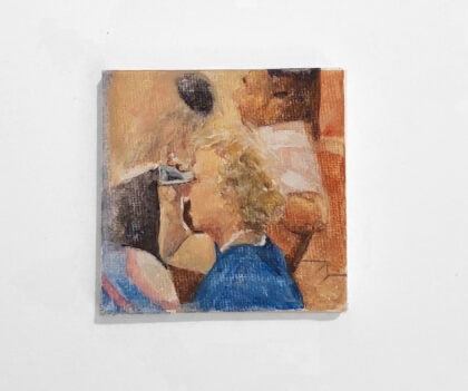 Guy Bernard Reichmann, Have we met? (from the series ‘1986 1993’), 2025, Gouache and watercolor on canvas, 6x8 cm