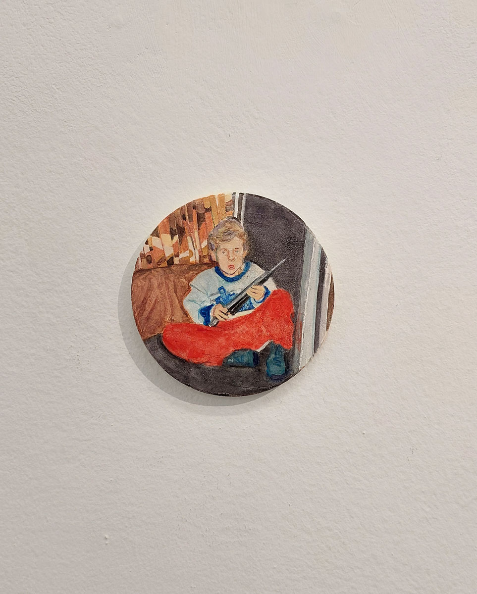 Guy Bernard Reichmann, The partisan (from the series ‘1986 1993’), 2025, Gouache and watercolor on wood, 10 cm diameter
