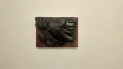 Guy Bernard Reichmann, Stains (from the series ‘1986 1993’), 2025, Polymer clay and acrylic on wood, 15x11 cm
